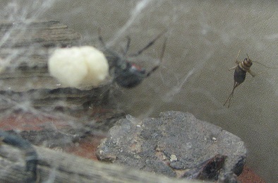 This photograph of a female black widow and her egg case was taken at the Arizona-Sonora Desert Museum by Judi Moreillon.
