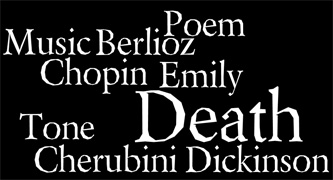 The following links provide resources to support high school students' investigations into the work and life of Emily Dickinson and selected musical compositions. Web Sites: The Poem "Emily Dickinson -- Death," Lilia Melani, Department of English, Brooklyn College - This page includes an analysis of the poem and specific information about the 4th stanza. "Emily Dickinson" - The Wikipedia has a lengthy article on Emily Dickinson. You MUST always verify Wikipedia information in other sources. Web Sites: The Music The Wikipedia has articles about all three composers or pieces of music. Berlioz's Marche au supplice ("March to the Scaffold") - You will find information about the composer on this page. There is also information about the Symphonie fantastique, Op. 14. Search the page for "supplice." Cherubini's Requiem - Search the page for information about the "Requiem." There is also a link to a brief mention of the piece, Marche funèbre. Chopin's Sonata #2 in B-flat Minor, Op. 35 ("The Funeral March") In the Library: Which of these pieces of music best captures the tone of Dickinson's poem? Compose a paragraph that includes: 1. Evidence from Dickinson's poem, your background knowledge